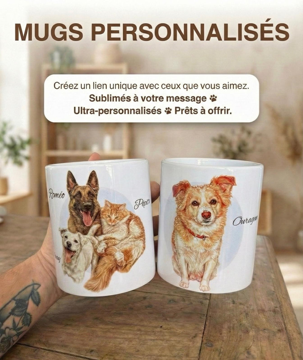 Ajoutez jusqu'à 3 photos et noms pour créer une tasse vraiment personnelle.